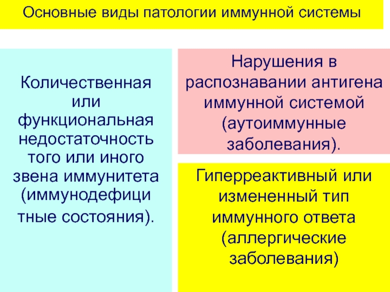 Слайд 88Основные виды патологии иммунной системы
