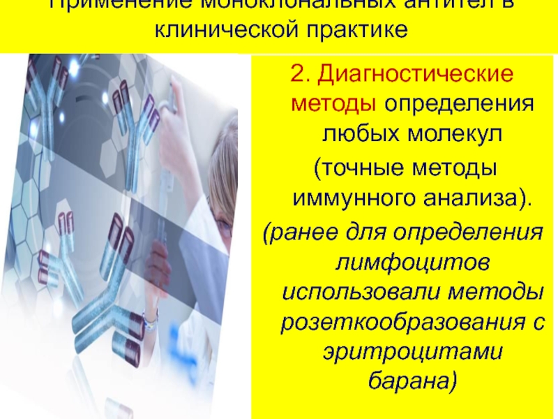 Именно моноклональные антитела используются в современные методах диагностики и терапии,