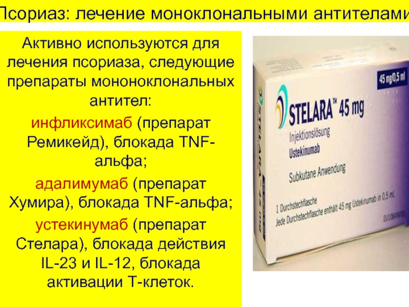 Слайд 17Псориаз: лечение моноклональными антителами