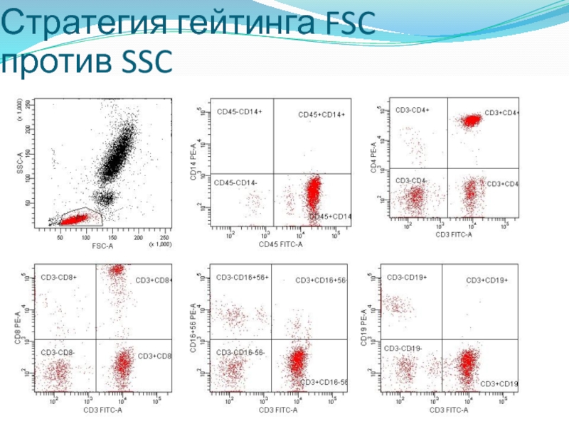 рассеяние света (SSC) — пропорциональное зернистости клетки.