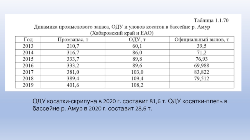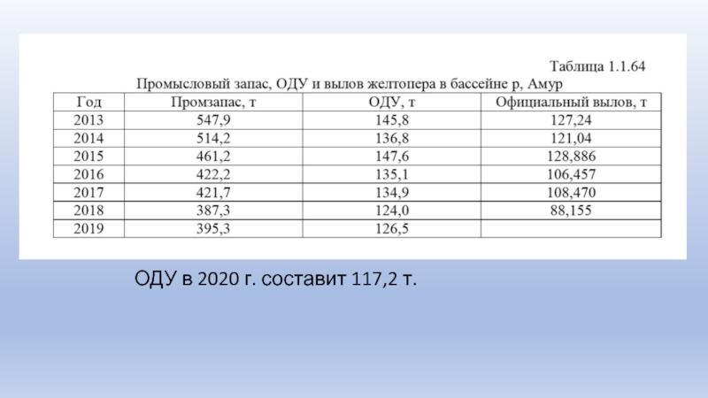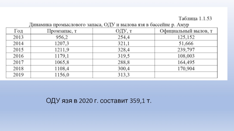 Слайд 74ОДУ язя в 2020 г. составит 359,1 т.