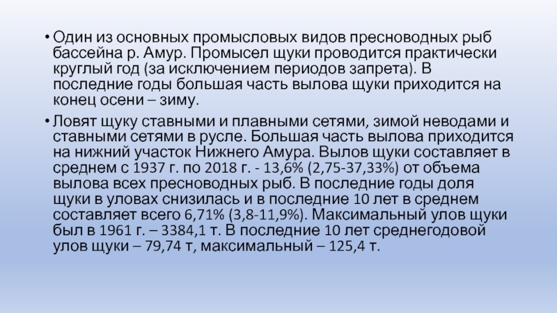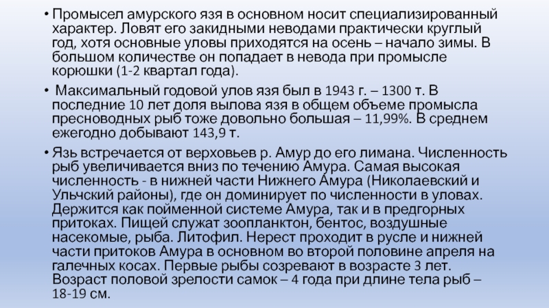 Слайд 73Промысел амурского язя в основном носит специализированный характер. Ловят его