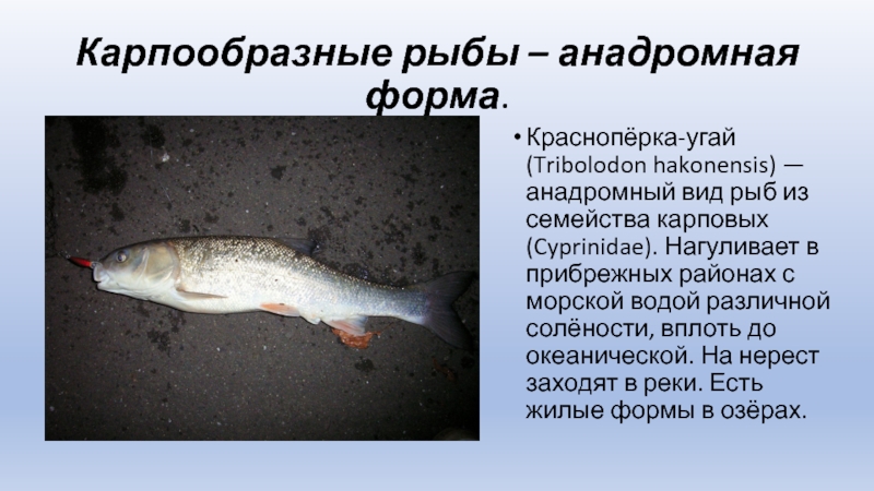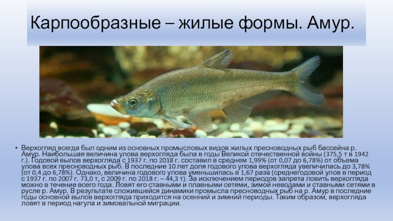 Слайд 89Один из основных промысловых видов пресноводных рыб бассейна р. Амур.