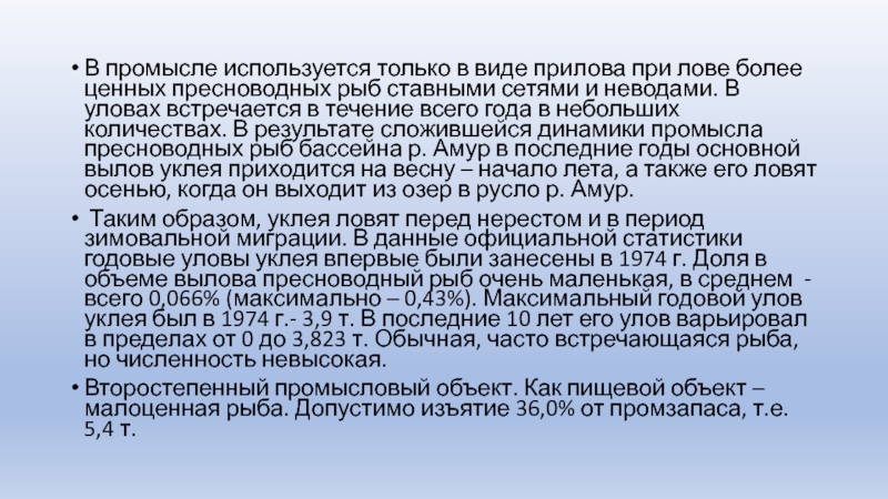 Слайд 76Как объект промысла жерех является малоценной рыбой. Используется в свежем