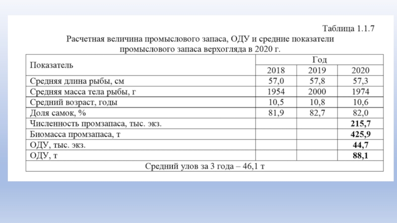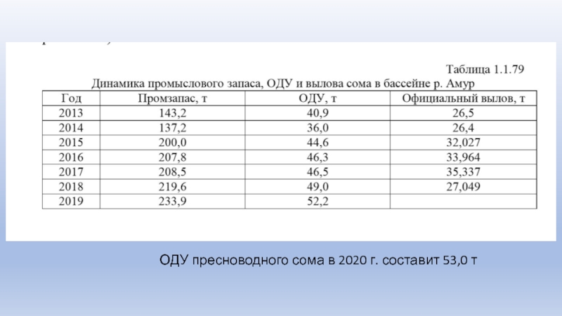 Слайд 87 ОДУ пресноводного сома в 2020 г. составит 53,0 т