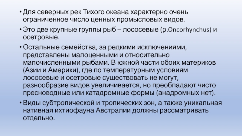 Слайд 2Для северных рек Тихого океана характерно очень ограниченное число ценных