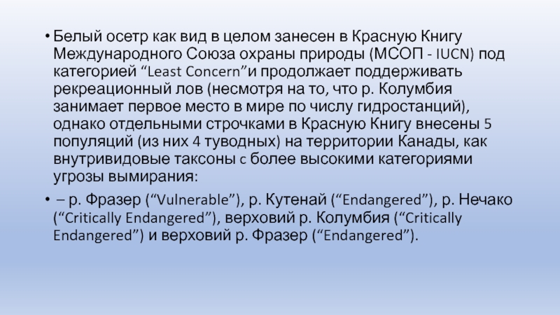 верховий р. Вилламетте (Willamette River) – Threatened (c 1999 г.);