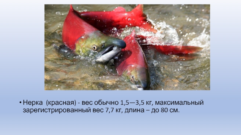 Слайд 21Нерка (красная) - вес обычно 1,5—3,5 кг, максимальный зарегистрированный вес