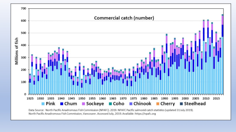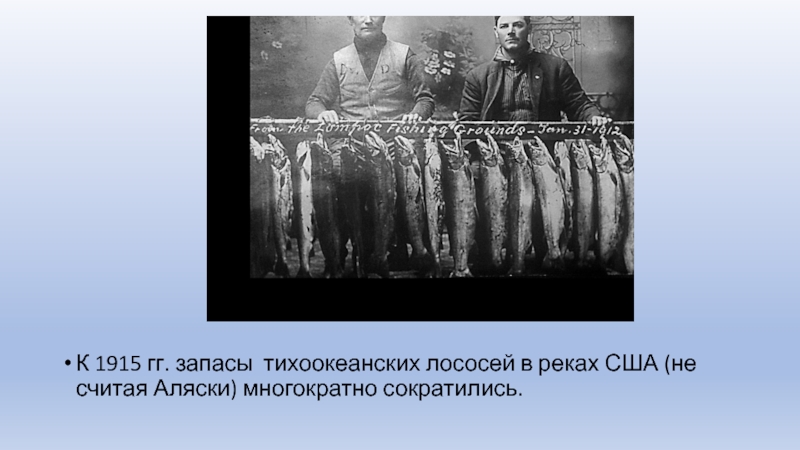 Слайд 4К 1915 гг. запасы тихоокеанских лососей в реках США (не