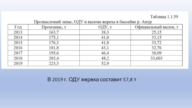 Слайд 77В 2019 г. ОДУ жереха составит 57,8 т
