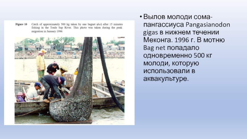 Слайд 99Вылов молоди сома-пангассиуса Pangasianodon gigas в нижнем течении Меконга. 1996