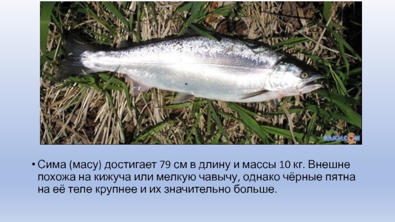 Слайд 23Сима (масу) достигает 79 см в длину и массы 10