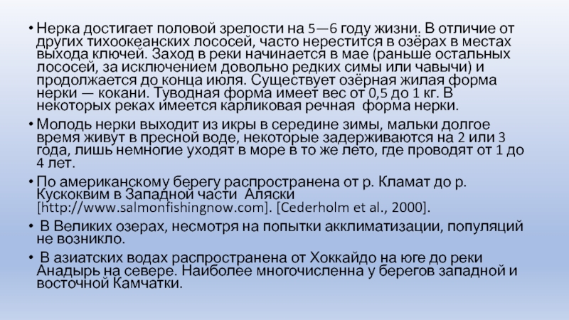 Слайд 22Нерка достигает половой зрелости на 5—6 году жизни. В отличие