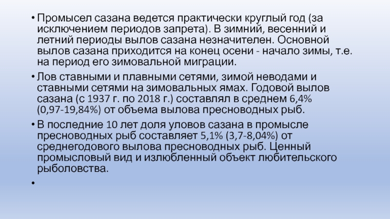 Слайд 64Промысел сазана ведется практически круглый год (за исключением периодов запрета).