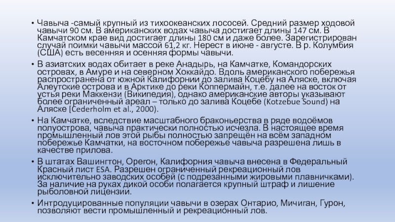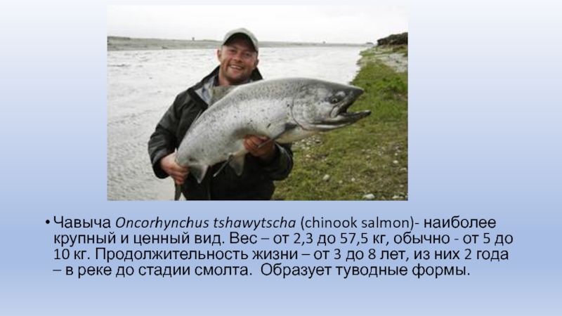 Слайд 17Чавыча -самый крупный из тихоокеанских лососей. Средний размер ходовой чавычи