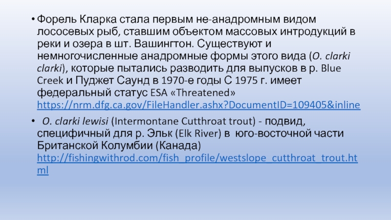 Есть еще несколько северо-американских эндемиков – O. clarki, O. aquabonita др.