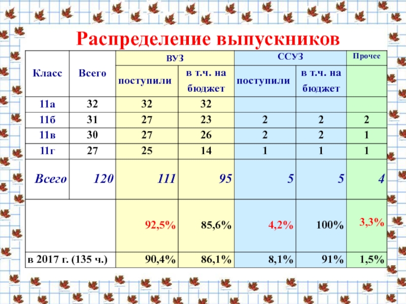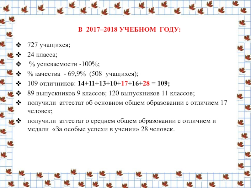 9 классов; 120 выпускников 11 классов;получили аттестат об основном общем образовании с отличием 17 человек;