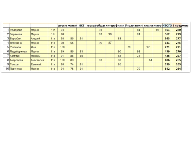 109 отличников: 14+11+13+10+17+16+28 = 109;