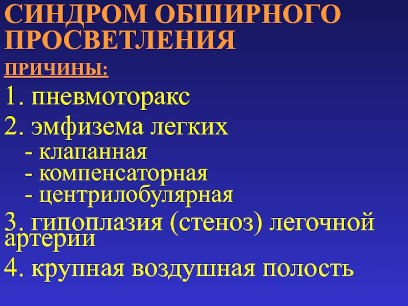 Слайд 54СИНДРОМ ОБШИРНОГО ПРОСВЕТЛЕНИЯ