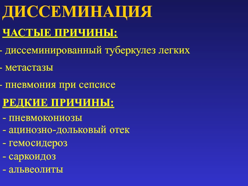 - диссеминированные поражения легких.