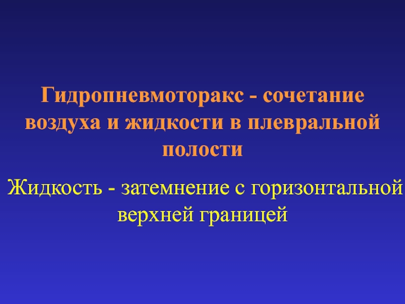 Слайд 57Гидропневмоторакс - сочетание воздуха и жидкости в плевральной полости