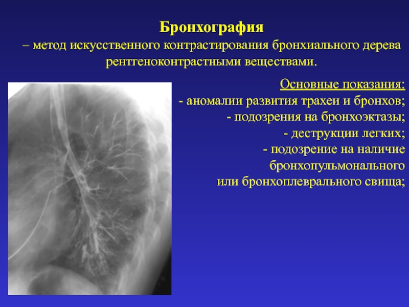 – метод искусственного контрастирования бронхиального дерева рентгеноконтрастными веществами.