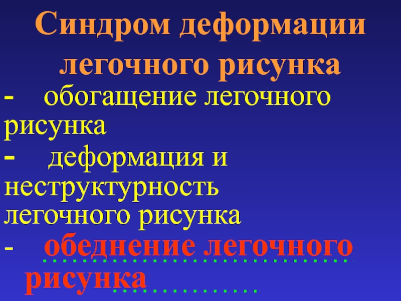 Слайд 67Синдром деформации легочного рисунка