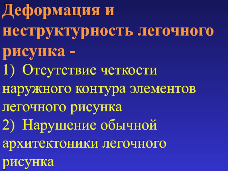 Слайд 73Деформация и неструктурность легочного рисунка -
