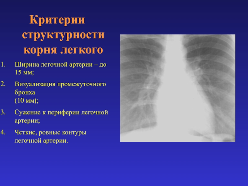 Слайд 82Критерии структурности корня легкого