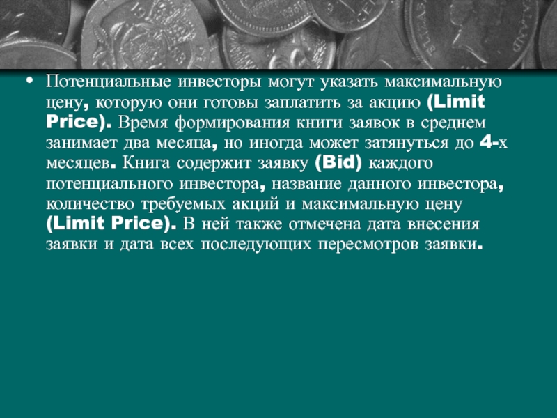 Слайд 7Потенциальные инвесторы могут указать максимальную цену, которую они готовы заплатить