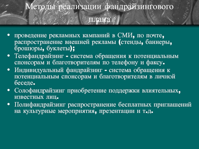 задачи фандрайзинга сводятся к поступлению конкретных средств под реализацию