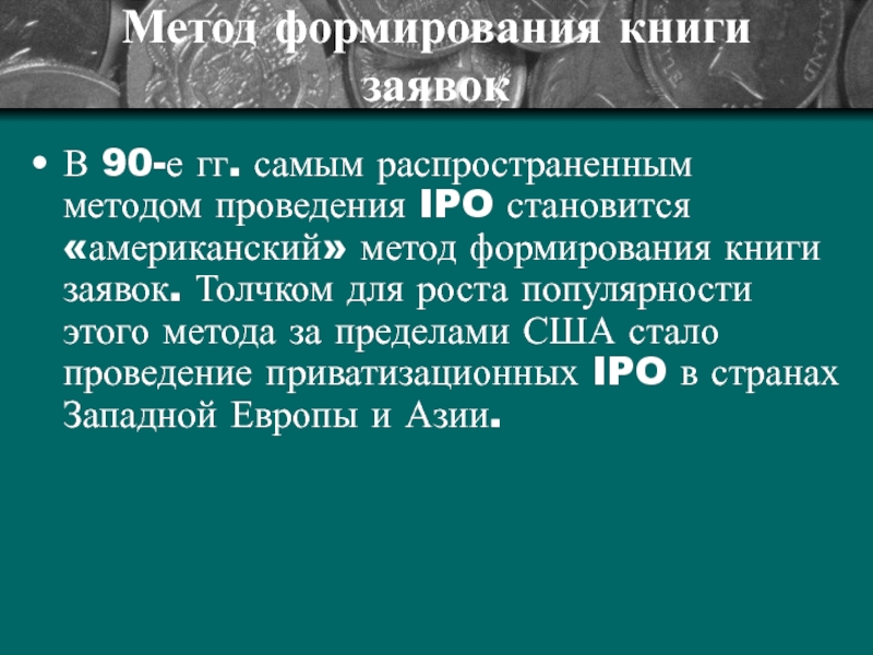 IPO становится «американский» метод формирования книги заявок. Толчком для роста