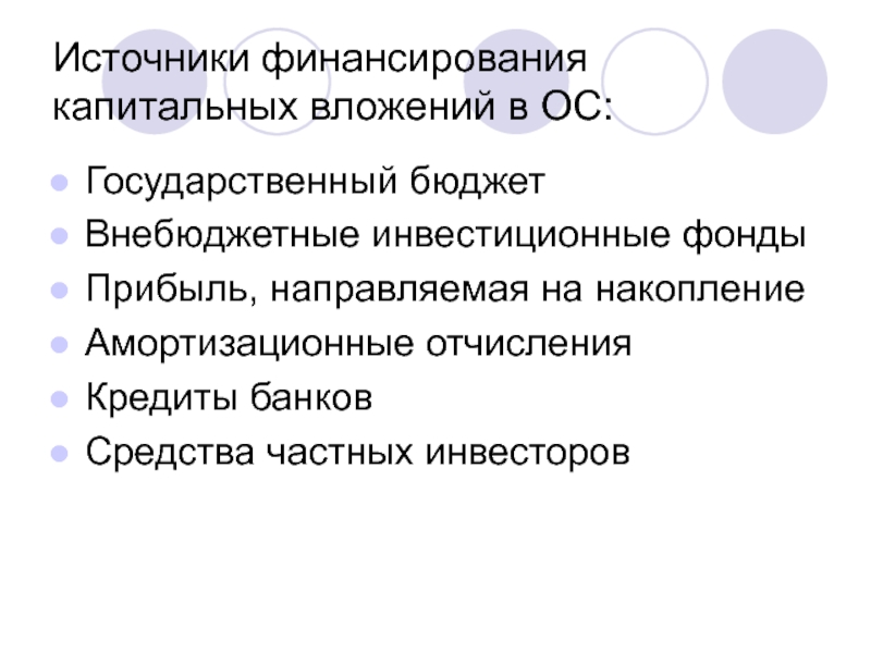 Слайд 8Источники финансирования капитальных вложений в ОС: