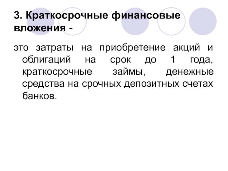облигаций на срок до 1 года, краткосрочные займы, денежные средства
