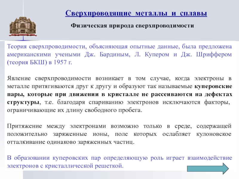 Верхняя оценка критической температуры для металлов по теории БКШ дает величину около 25 К, что согласуется с экспериментальными значениями ТСВ у лучших сверхпроводяших сплавов.