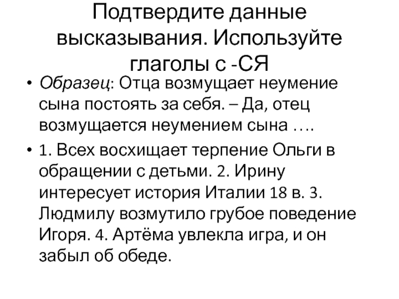 Слайд 40Подтвердите данные высказывания. Используйте глаголы с -СЯ
