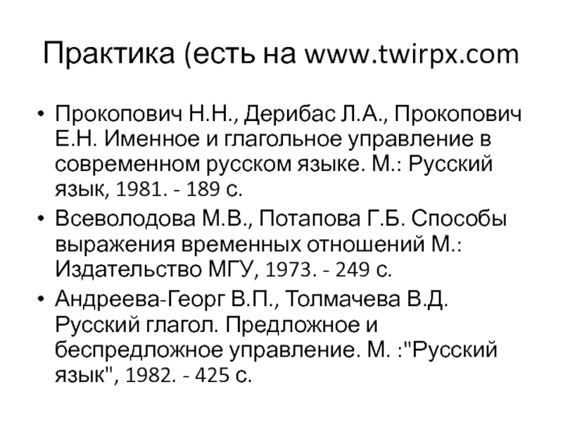 Андреева-Георг В.П., Толмачева В.Д. Русский глагол. Предложное и беспредложное управление. М. :"Русский язык", 1982. - 425 с.