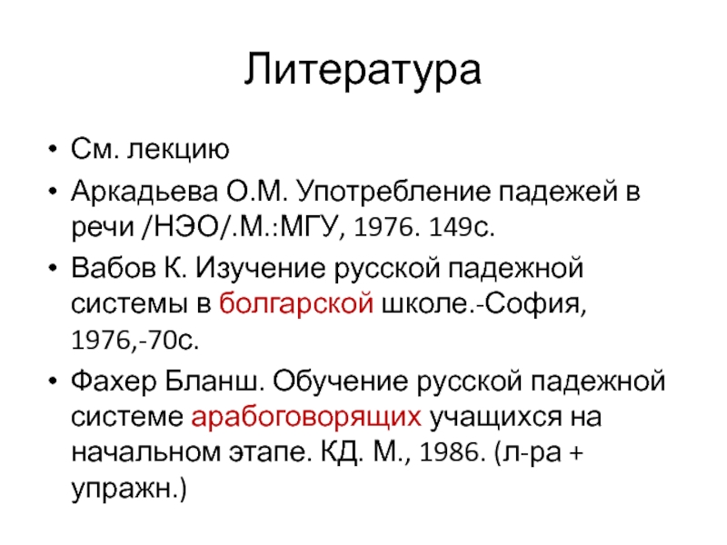 Вабов К. Изучение русской падежной системы в болгарской школе.-София,