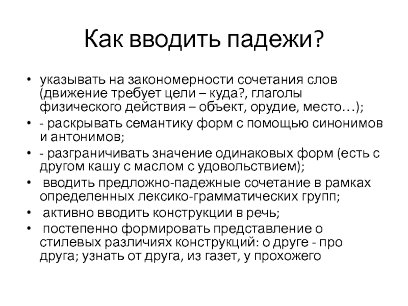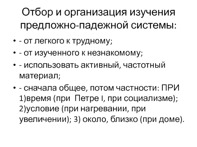 Слайд 7Отбор и организация изучения предложно-падежной системы: