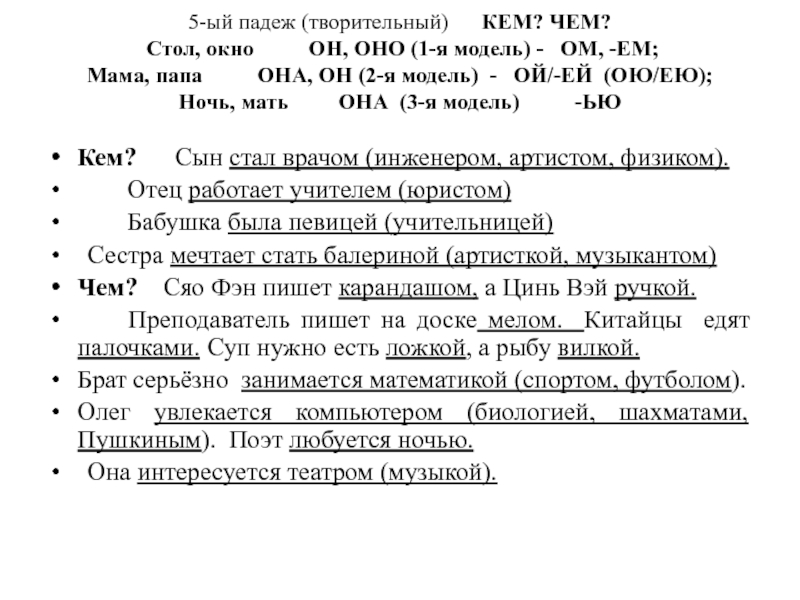 5-ый падеж (творительный) КЕМ? ЧЕМ?