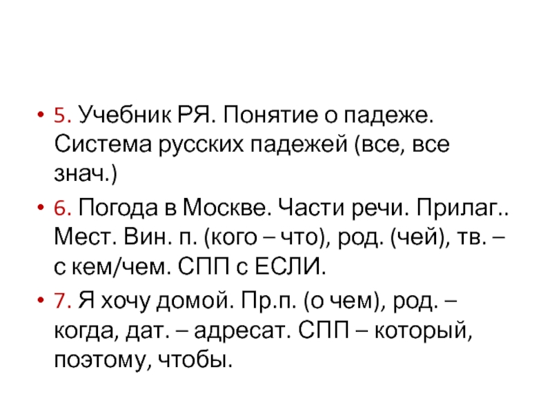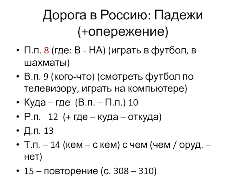 Слайд 9Дорога в Россию: Падежи (+опережение)