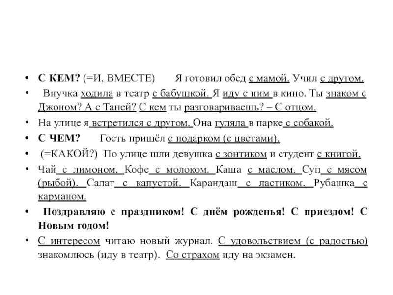 Слайд 12С КЕМ? (=И, ВМЕСТЕ) Я готовил обед