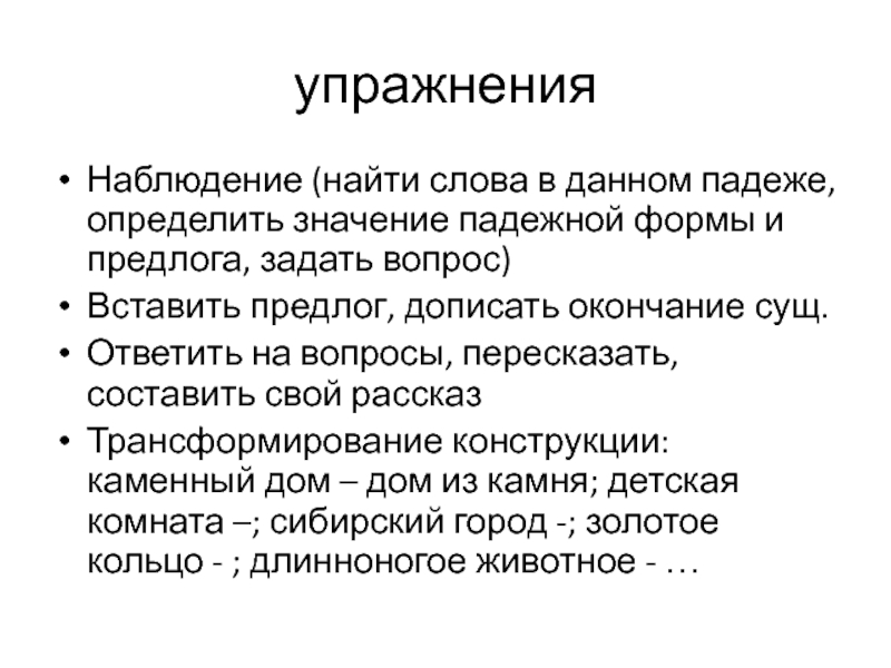 Наблюдение (найти слова в данном падеже, определить значение падежной формы