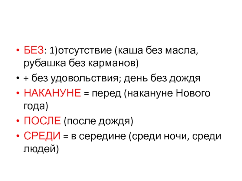 потом частности: ПРИ 1)время (при Петре I, при социализме); 2)условие (при нагревании, при увеличении); 3) около, близко (при доме).