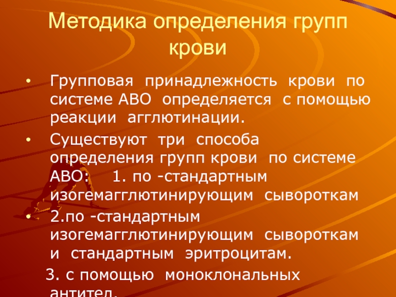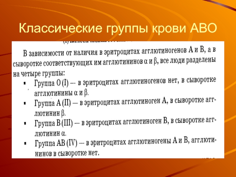медицине термин « группа крови»,как правило, отражает сочетание эритроцитарных антигенов системы АВО и резус- фактора и соответствующих антител в сыворотке крови.