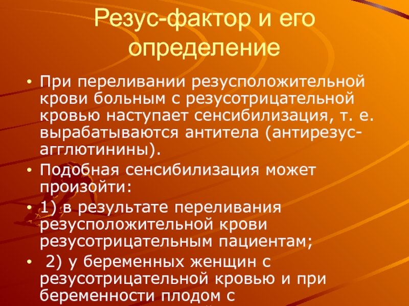 1) в результате переливания резусположительной крови резусотрицательным пациентам;