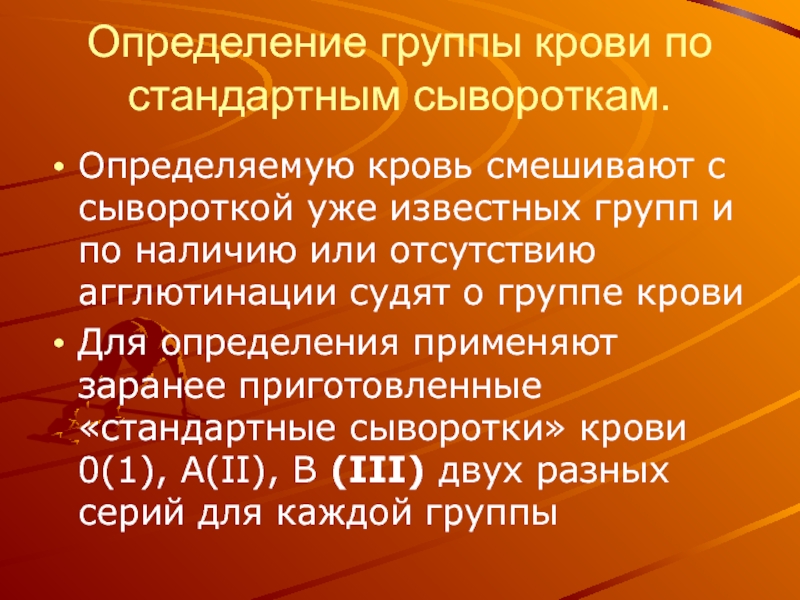 Слайд 18Определение группы крови по стандартным сывороткам.