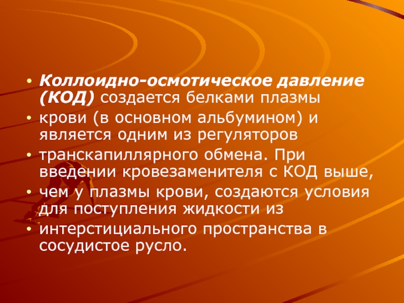 транскапиллярного обмена. При введении кровезаменителя с КОД