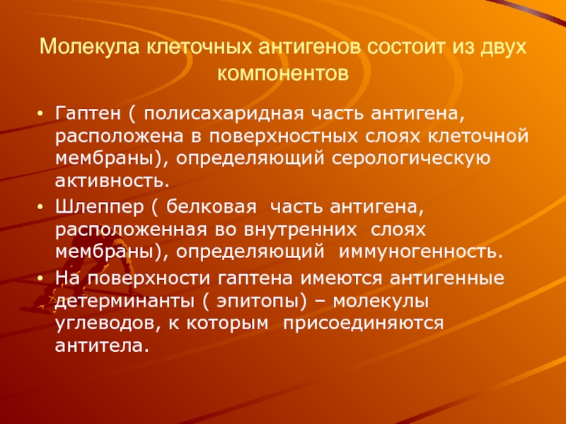 Слайд 5Молекула клеточных антигенов состоит из двух компонентов