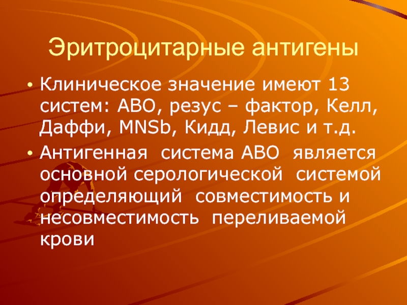 Клиническое значение имеют 13 систем: АВО, резус – фактор,